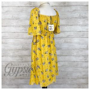 A Pretty Yellow Floral Dress that's easy wear. Empire Waist, Flutter Sleeves, Lined.