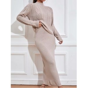 2 Piece Knit Skirt Set Blush Color Long Skirt & Cable Knit Set