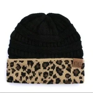 LAST ONE! π₯³HOST PICKπ₯³ NWT C.C. Black and Leopard Print Knit Beanie