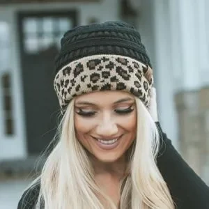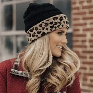 Adorable, super trendy and stylish C.C. beanie with on-trend leopard print pattern on cuff.