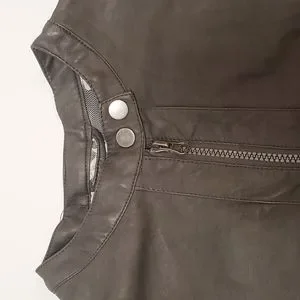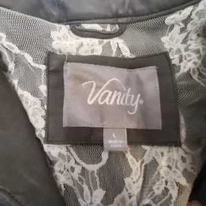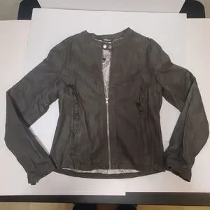 Vanity Women's Grey Faux Leather Jacket Size Large. Bottons on collar and has front hip pockets. Lace inner lining.