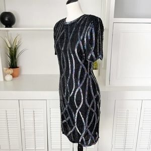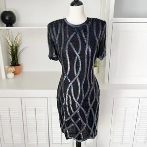 Vintage Laurence Kazar Women's Beaded Sequin Silk Dress Size 6/8