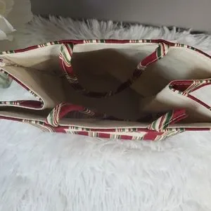 Longaberger Striped Canvas Embroidered Tote Bag with lining. Also has front pocket!