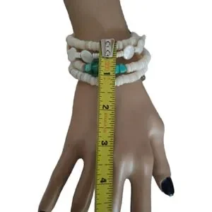 Hand Crafted Art Glass and Natural Shell Wrap Bracelet NWT