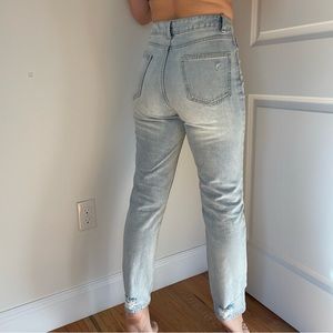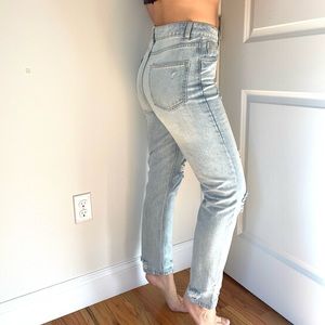 High Waist Straight Leg Ripped Bleached Blue Jeans