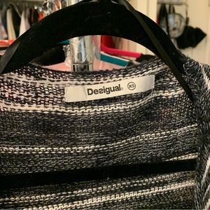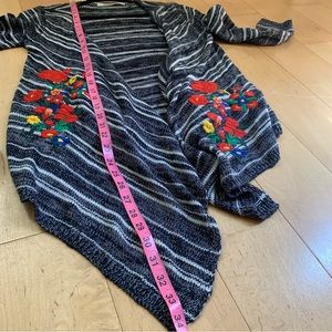 Lovely little cardigan by desigual~ salt and pepper marled acrylic knit, with beautiful colourful floral embroidery! Handkerchief uneven hem. Lightweight and perfect little cover up. Size XS, good condition