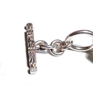• Handmade sterling silver cylinder beads and clasp with hand stamped design