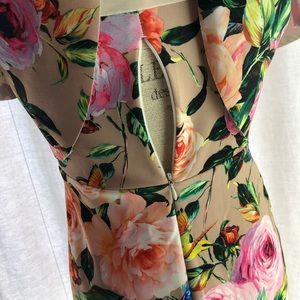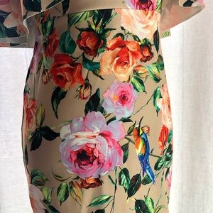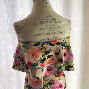 Features: Strapless Floral Ruffle Sheath tube top Dress. Back zip, Sheath silhouette, tiered ruffle at neckline, Back Zipper Closure