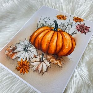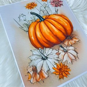 Wall Art Watercolor Floral Pumpkins Illustration Print Poster Card Unframed