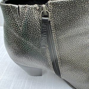 Frankie4 Ankle Booties Speckled Leather Side Zipper Cuban Heel Pewter Size 8½