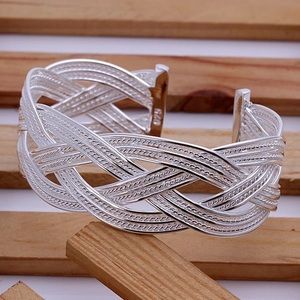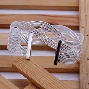 BRAIDED BANGLE BRACELET 925 STERLING SILVER
