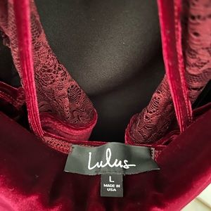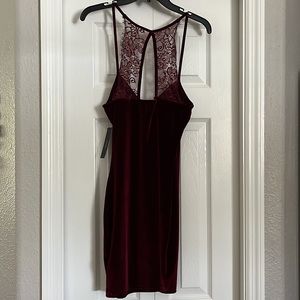 Lulus burgundy velvet mini cocktail dress- size large