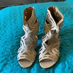 Beautiful cream heel sandals in great used condition with details shown in pictures.