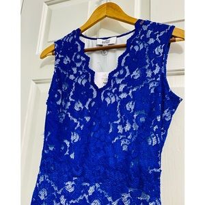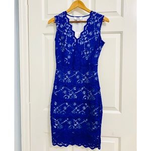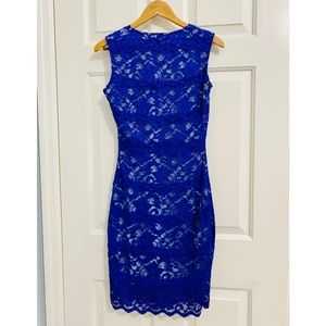Badgley Mischka Lace Cocktail Dress. Never worn with tags. cobalt blue. Size 0.