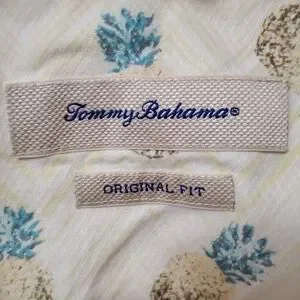 great used condition. Tommy Bahama. XL. 💯 Silk. pineapples. yellow, white and blue. chest 27 inches. length 31 inches. quality made shirt. B2