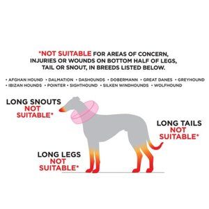 Not Suitable for areas of concern, injuries, or wounds on bottom half of legs, tail, or snout, in the following breeds: