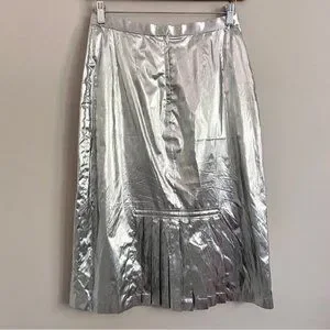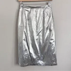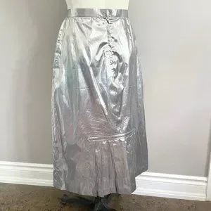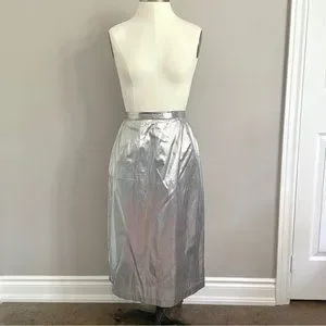 Vintage 70s Silver Metallic Tissue Lamé Lined Midi Party Skirt - M/28-29"
