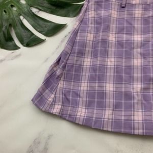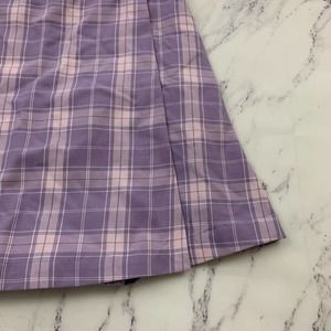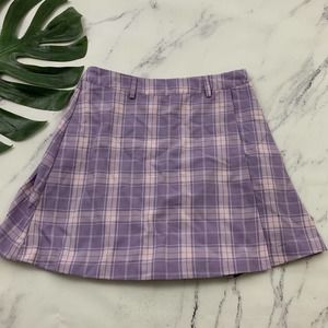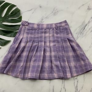 Hot Topic women's purple and pink plaid pleated mini skirt, size S. It is free from any rips or stains. It measures about 30 inches around the bust and is about 16 inches long.