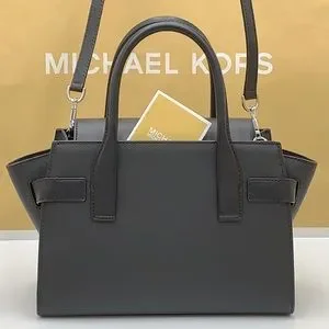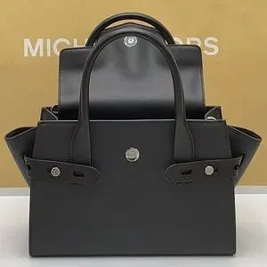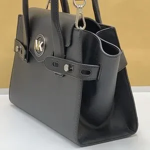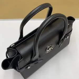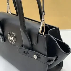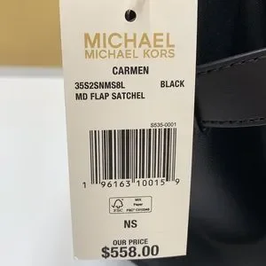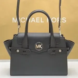 MICHAEL KORS Carmen Medium Flap Saffiano Leather Belted Satchel Black color