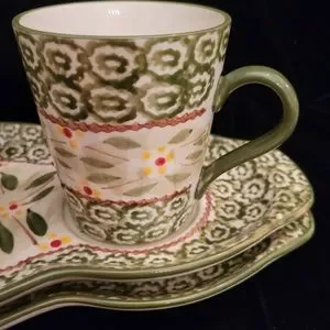 Temptations Presentable Ovenware by Tara. Green Old World Sandwich plate/mug.