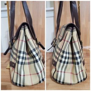 This authentic Burberry Ecordelia Haymarket Check Satchel Shoulder Bag is in it's good pre-owned condition. The exterior coated canvas is clean and beautiful. Interior is clean.