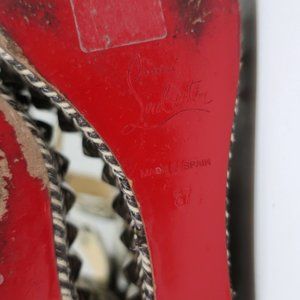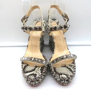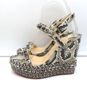 CHRISTIAN LOUBOUTIN CATACLOU STUDDED SNAKE PRINT ESPADRILLE WEDGES SIZE 37