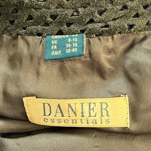Danier Suede Leather Oversized Shacket Button Up Laser Cut Out Green Jacket Coat