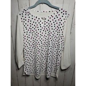 Women’s VAN HEUSEN White Polka Dot Long Sleeve Blouse Size Med NEW