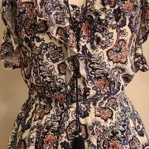 5 button up front with drawstring/tassels in front