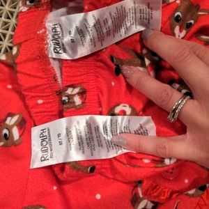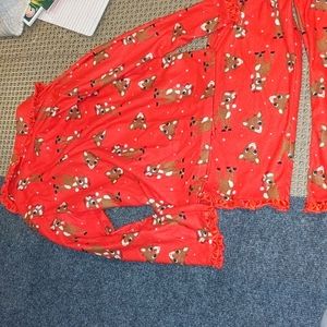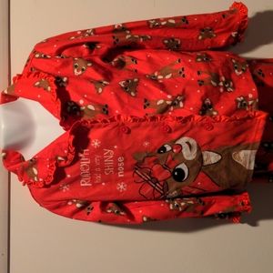 Red button down coat style collar pajamas. Featuring Rudolph the red nosed reindeer and cute snowflake designs. Soft and cozy jammies for your little deer! This listing includes the top and bottom.