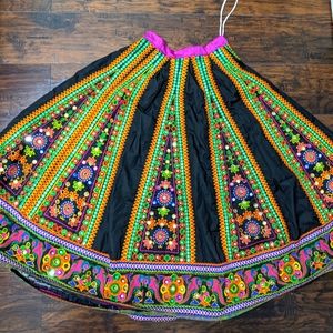 Beautiful indian multicolored lehenga choli/chaniya choli set with ready made blouse and dupatta. Perfect for navratri/garba or other events! Blouse has beautiful mirror work and can be worn with other outfits as well. Measurements shown in photos. Price is firm since this is in excellent condition!