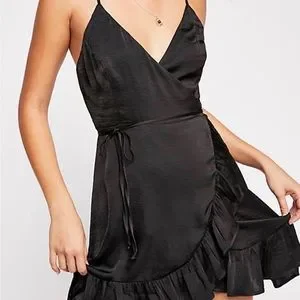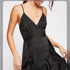 Brand new🔥Free People All My Love Wrap Shine Mini Dress In Black Satin