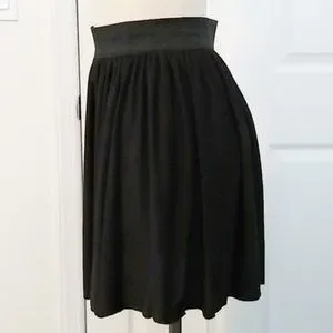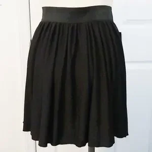 A wardrobe staple. This flowing black mini goes with just about anything. Has a fun, flirty flow to it! Elastic waist band to hug and sit at just the right spot. As seen on Kourtney Kardashian!