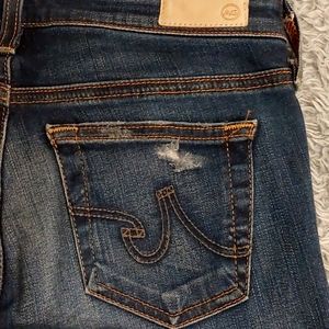 AG "the legging ankle" Super skinny stretch denim jeans size 24. These jeans are in excellent condition inside and out. They stretch to fit the shape of the body. The waist is 14 inches across, the front rise is 7 1/2 inches and the inseam is 28 1/2 inches.