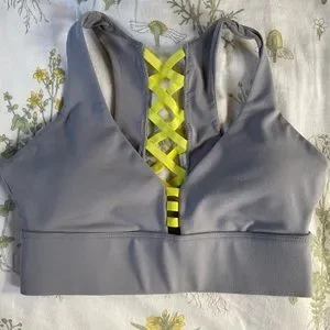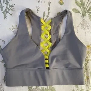 EUC Fablletics Sport Bra XS Grey and Neon Yellow Straps
