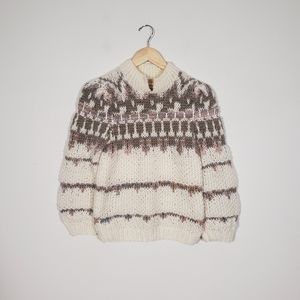 Excellent vintage condition, no major flaws to note. There are some loose threads/ends here and there as this is a vintage hand knit piece. Other minor flaws may exist due to garment age