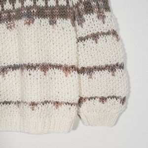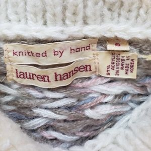 Gorgeous handknit sweater with notch collar, slight puff shoulders and balloon shaped sleeves. Lauren Hansen