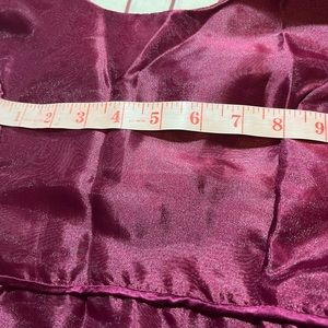 Cranberry in color, Organza fabrics with satin lining/zipper at the back for closure/Brand new/ Clean and no flaws/ Smoke free home.