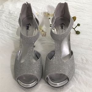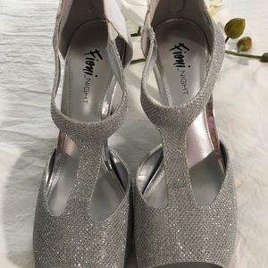 FIONI NIGHT 4 inch high heels, silver, size 7.5, single use.