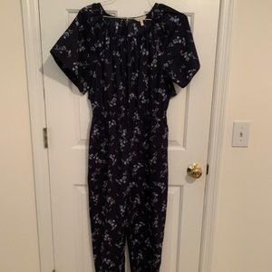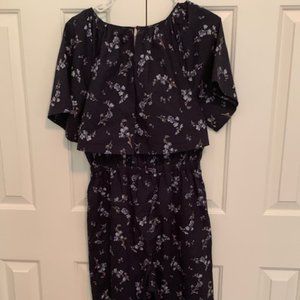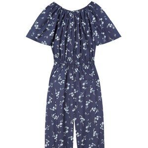 Rebecca Taylor Francine Floral Poplin Jumpsuit, Open Cape Back, Navy, Sz 6