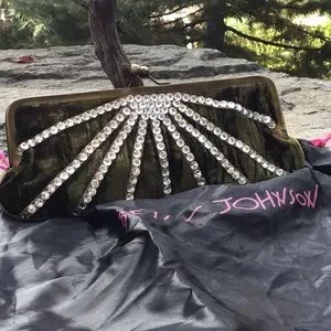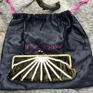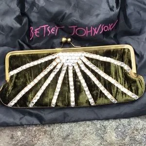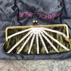 💋Exquisite💚green velvet & rhinestones💎clutch by Betsey Johnson