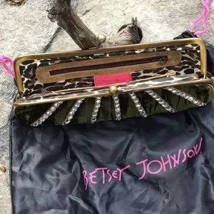 💎Exquisite 💚💋Betsey Johnson Forest Green Velvet & Rhinestones Clutch.