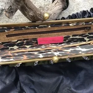 Animal-print lining with sparkly tan edging.