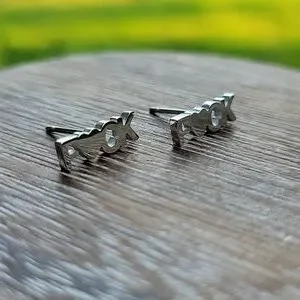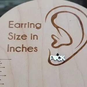 Sorry, Mom.. Sometimes subtle profanity is called for. Minimalist silver titanium stud earrings with 925 sterling silver pins.