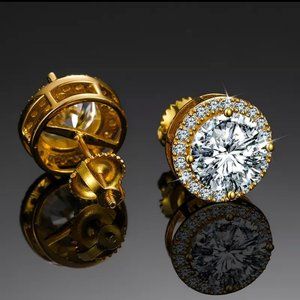 Certified 4ct. t.w. Moissanite Diamond Round Halo Stud Earrings NEW
