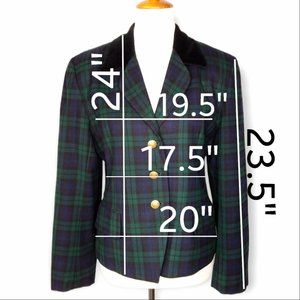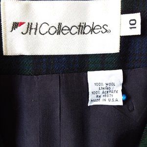 Vtg JH Collectibles 100% Wool Blazer Size 10 Tartan Plaid Velvet Collar USA