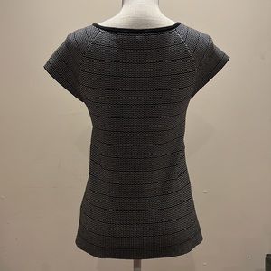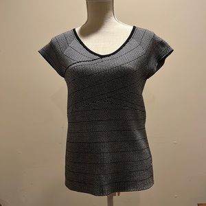 Cable & Gauge Women’s Knit Top Black/White SS V Neck Striped Stretch Size: M
