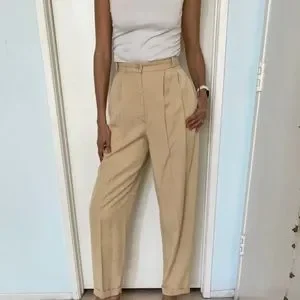 Style tags: 90s classic minimalist wardrobe staple office casual tencel high-waist trousers pants vintage retro cool weekend travel everyday academia collegiate teacher professional winter Fall Michael Glasser Democracy