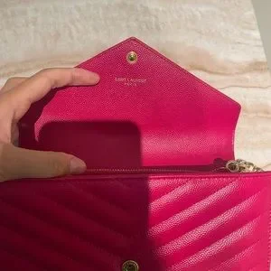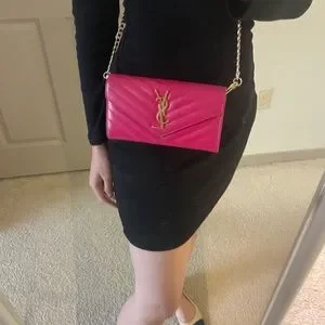❌SOLD❌AUTHENTIC YSL Saint Laurent Leather Wallet on Chain WOC Hot Pink Crossbody