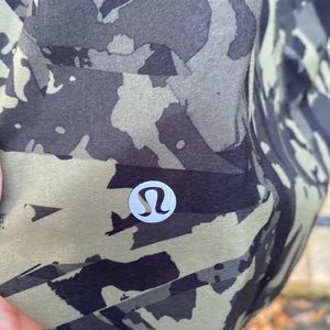 Lululemon strappy back, camo print, mesh around neck and to arms, beautiful flowy top, great camo print, I am not sure if it a 6 or 8 but I would say it fits like a 6, don’t know the name of it